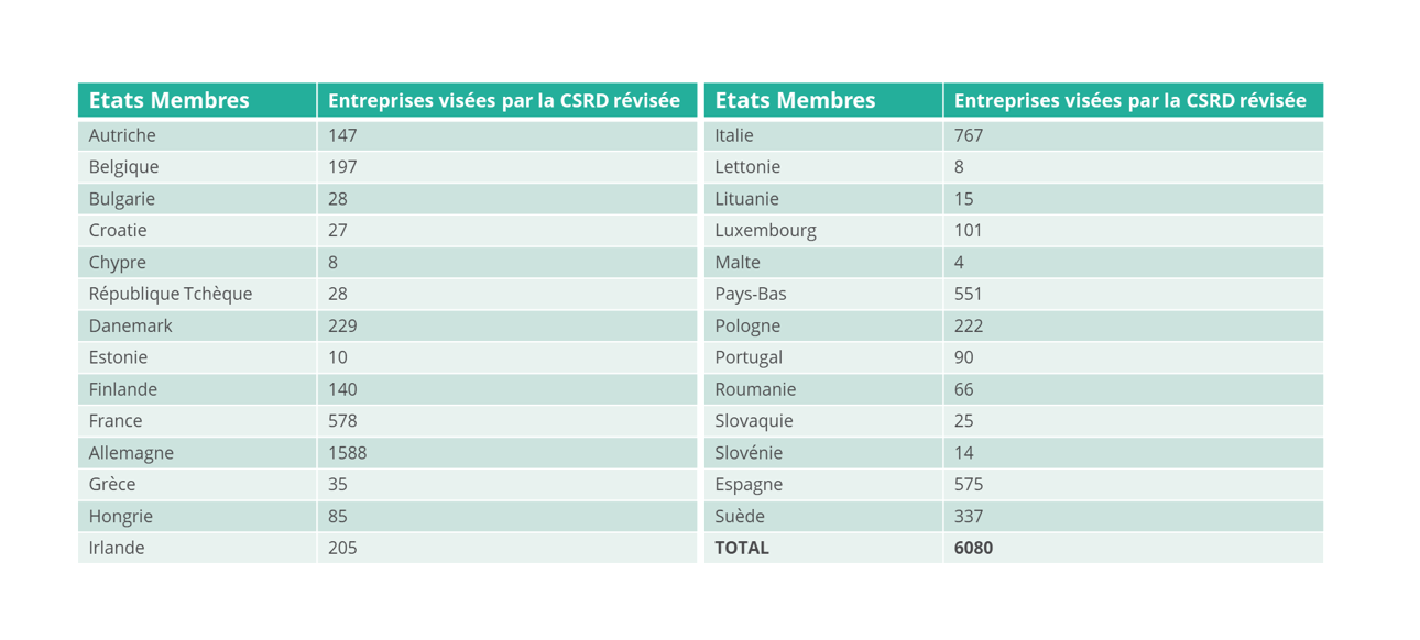 Voici la répartition des entreprises désormais concernées en Union européenne (hors entreprises non européennes) :