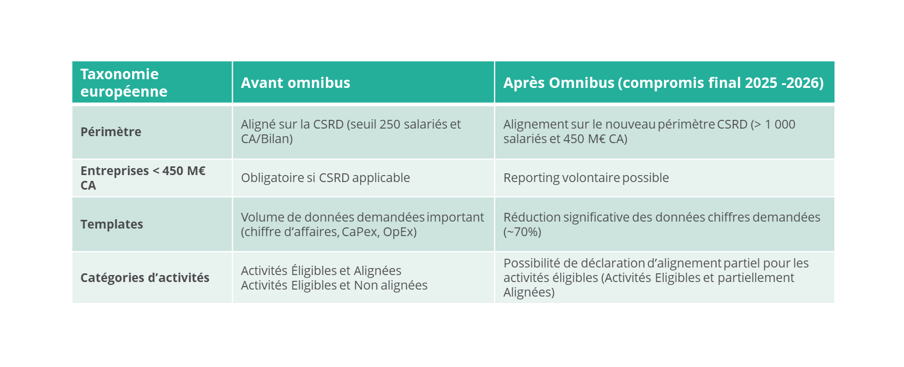 Sur la Taxonomie, il convient de distinguer le texte Omnibus I définitivement adopté et les autres évolutions encore en cours.