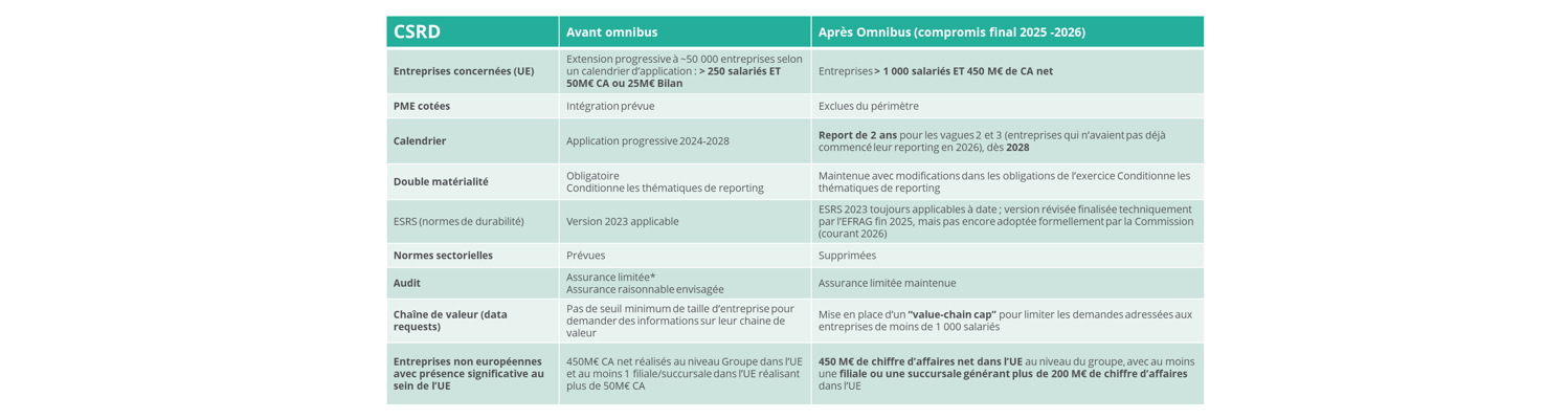 - 26 février 2025 : présentation du paquet Omnibus par la Commission européenne